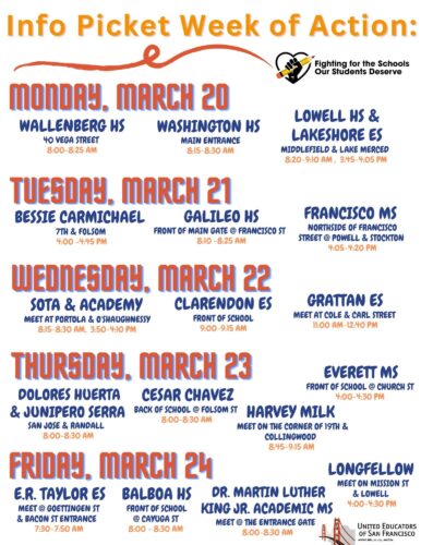 UESF is starting its week of informational pickets today. More than 50 schools will be organizing pickets throughout the week. To see the complete list of participating schools, visit uesf.org and join the picket lines to show your solidarity!